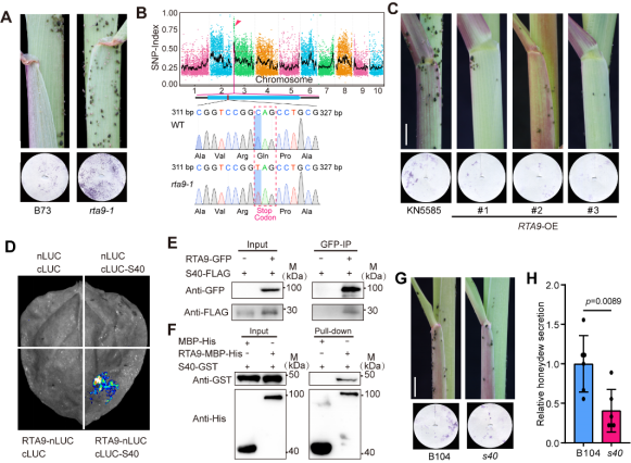 图1 RTA9与S40蛋白互作调控玉米抗蚜虫功能