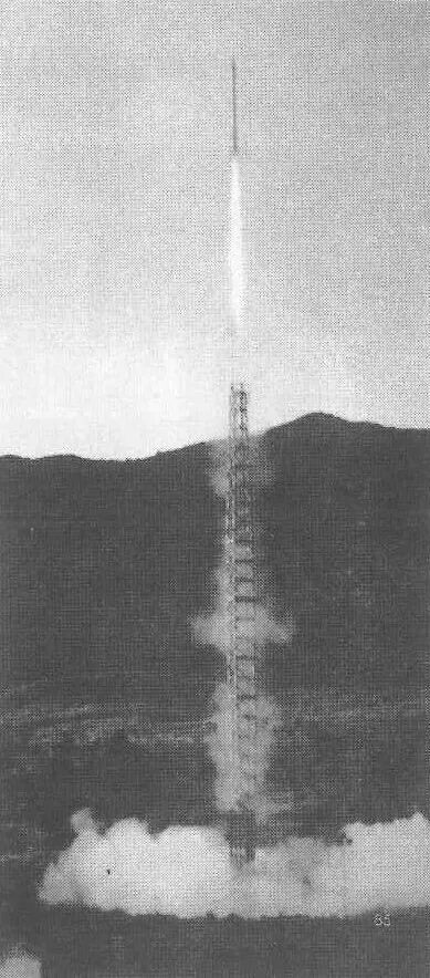 正在升空的T-7A火箭(图源:《小狗飞天记——中国生物火箭试验纪实》)