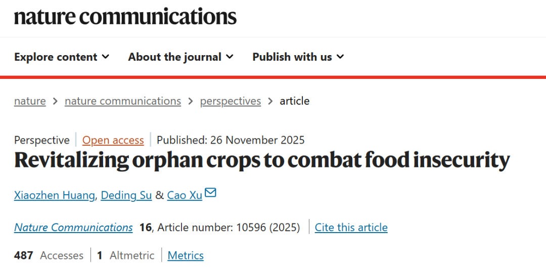 粮食安全在人口增长、气候变化和国际局势动荡的多重压力下正面临前所未有的挑战。当前农业系统对少数主粮的依赖度高,粮食安全和营养安全体系存在结构性风险。如何践行大食物观,在不确定性中重建可靠、有韧性的未来食物体系,成为世界关注的焦点。11月26日,中国科学院遗传与发育生物学研究所许操研究员团队应邀在Nature Communications发表综述论文Revitalizing orphan crops to combat food insecurity,系统分析了孤儿作物(Orphan crops)的农业价值、发展瓶颈、研究趋势,提出了AI赋能的整合生物育种策略,为挖掘农业的多种功能和发挥乡村的多元价值提供新思路。